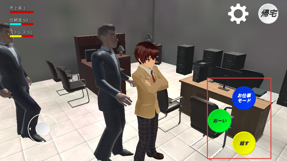 3、在辦公室場(chǎng)景中可點(diǎn)擊工作模式等按鈕,切換工作模式,與同事互動(dòng),開展工作事務(wù)。