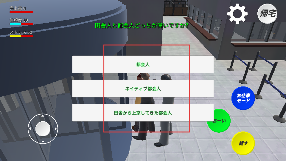 2、面對(duì)諸如鄉(xiāng)下人和城里人誰(shuí)更厲害的問題,從給出的選項(xiàng)中選擇答案,推進(jìn)對(duì)話和劇情。