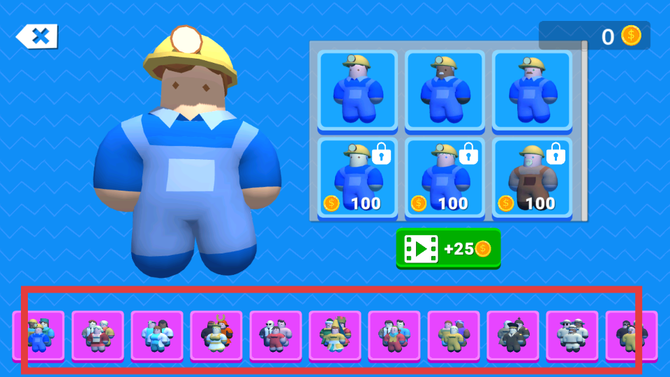 1、在角色選擇界面中下方有多種造型可供挑選,上方解鎖造型需花費金幣,點擊觀看廣告能獲取少量金幣,可按需選擇合適造型開啟游戲。