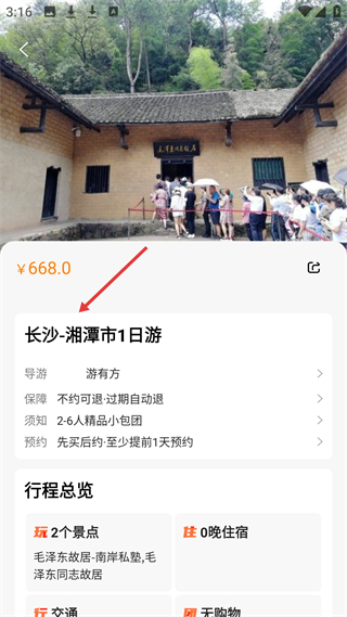 4、長(zhǎng)沙湘潭1日游售價(jià)668元,導(dǎo)游專業(yè)且不約可退,為2、6人小包團(tuán),含2個(gè)景點(diǎn)行程無(wú)住宿。