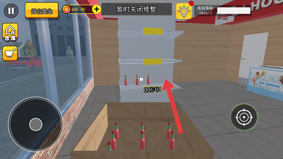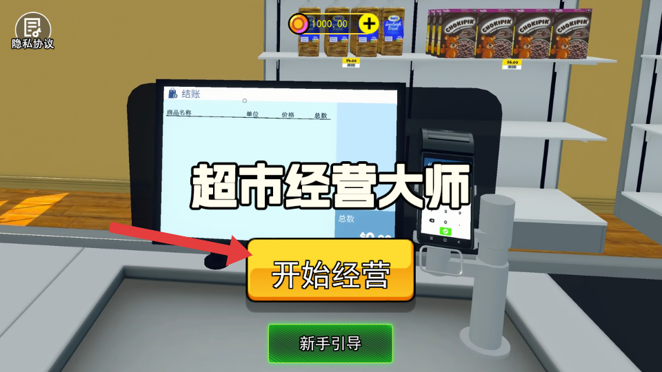 1、進入游戲后,點擊醒目的開始經(jīng)營按鈕,即可開啟你的超市經(jīng)營之旅,開啟后續(xù)的進貨、擺貨等操作。