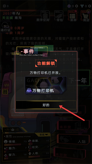 4、隨著時間推進,會解鎖新功能如萬物打印機,點擊好的確認功能解鎖,不斷豐富游戲內(nèi)容。