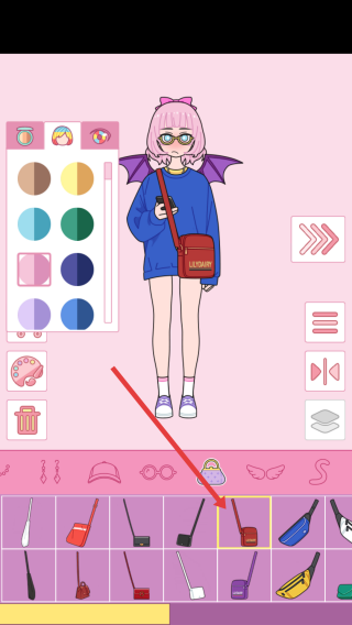 2、接著為角色挑選自己喜歡藍色上衣、紅色挎包等服飾配件,打造獨特的角色造型。