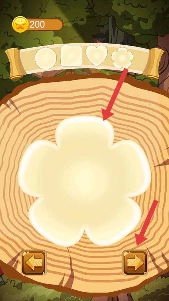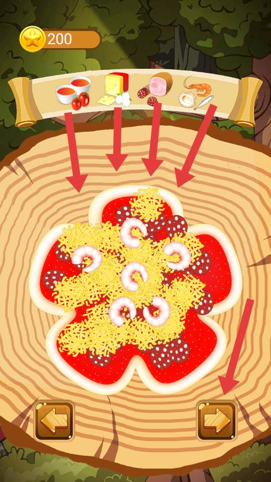 1、界面上方圖案提示,選擇花朵形狀的披薩餅底,可通過左右箭頭按鈕切換選擇,選好后為后續(xù)加食材做準備。