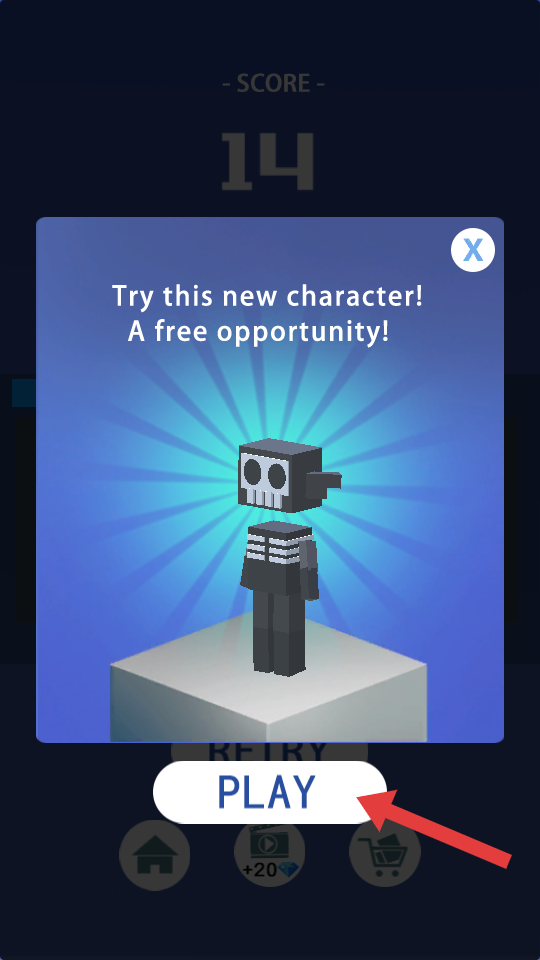 3、出現(xiàn)新角色提示時(shí),點(diǎn)擊PLAY按鈕,嘗試使用新角色,利用免費(fèi)機(jī)會(huì)體驗(yàn)不同角色的玩法。