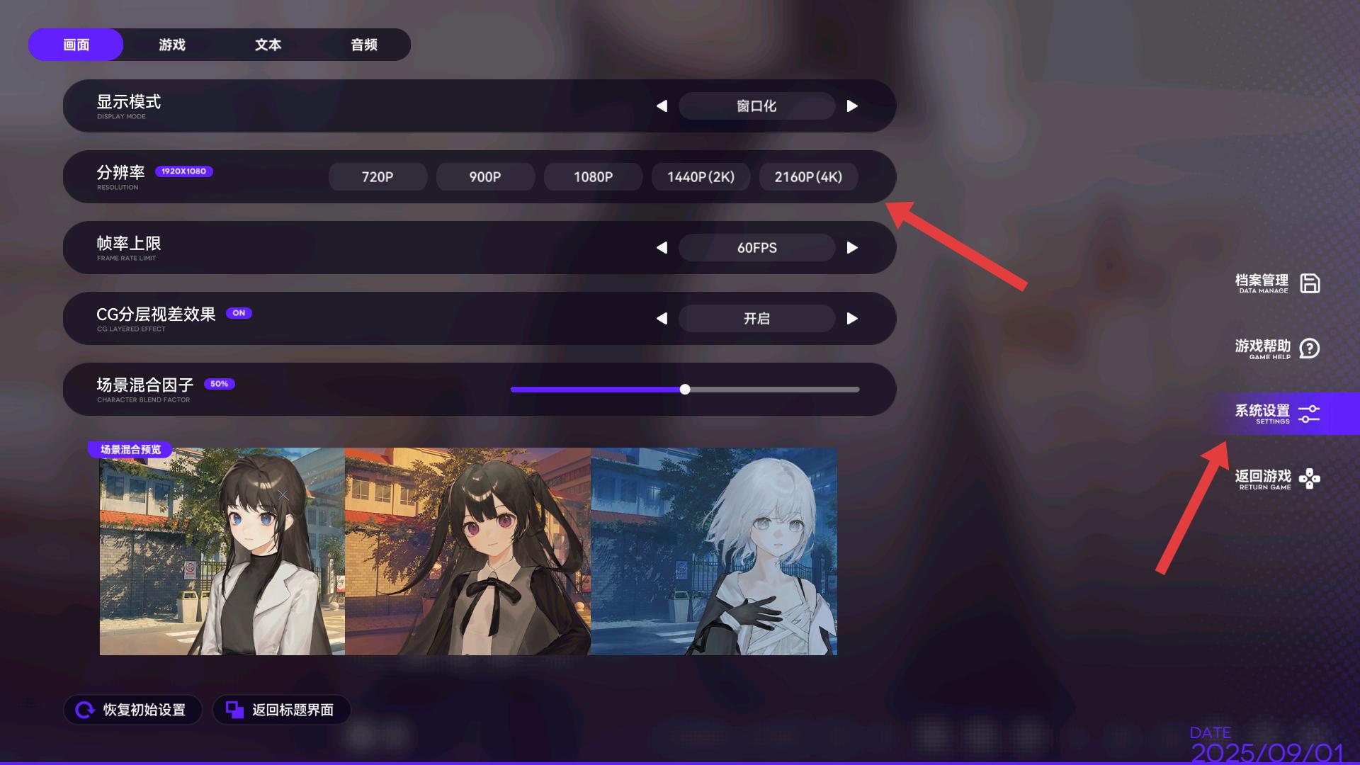 3、系統(tǒng)設(shè)置里,能對(duì)游戲、文本、音頻等多方面進(jìn)行設(shè)置,根據(jù)自己的喜好,打造更貼合需求的游戲環(huán)境,提升游玩感受。