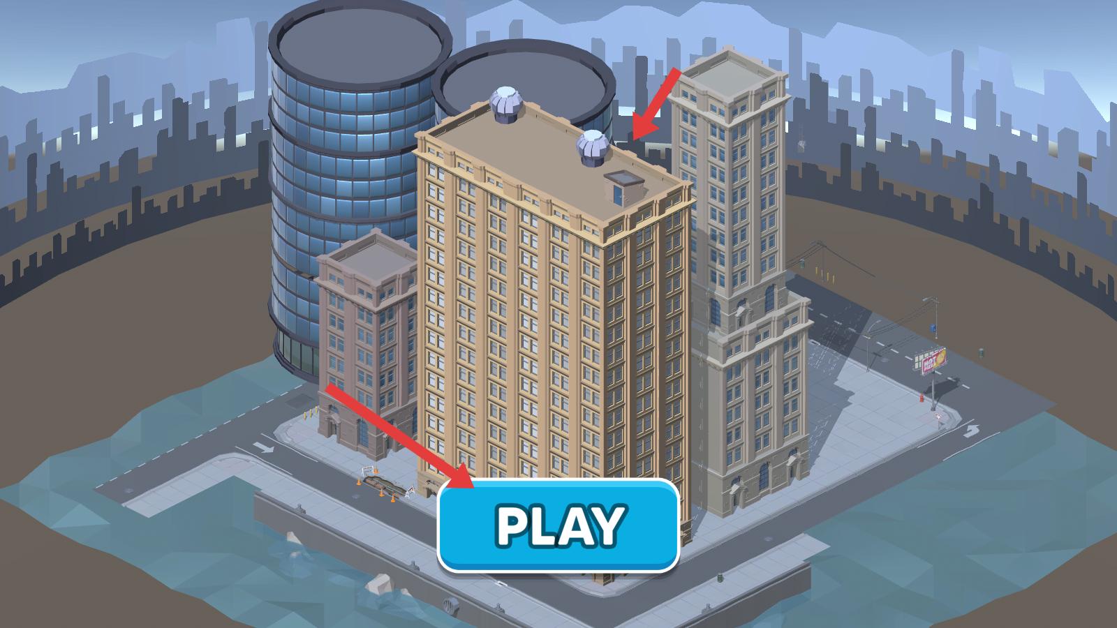 1、點擊藍色PLAY按鈕,進入游戲,準備對畫面中的建筑進行操作,開啟破壞建筑相關(guān)的游戲進程。