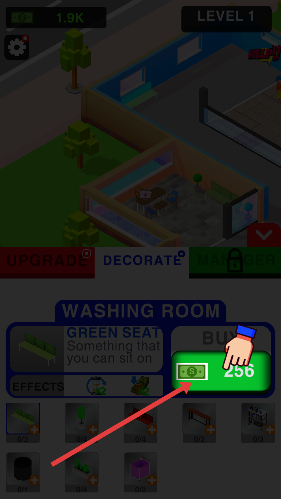 3、然后裝飾超市,比如購買綠色座椅,花費256美元,讓超市環(huán)境更舒適,吸引更多顧客。
