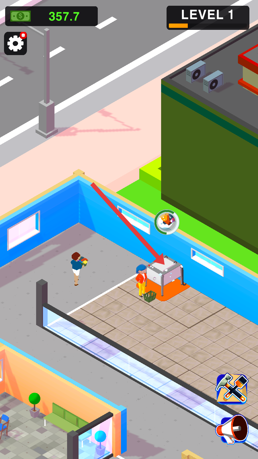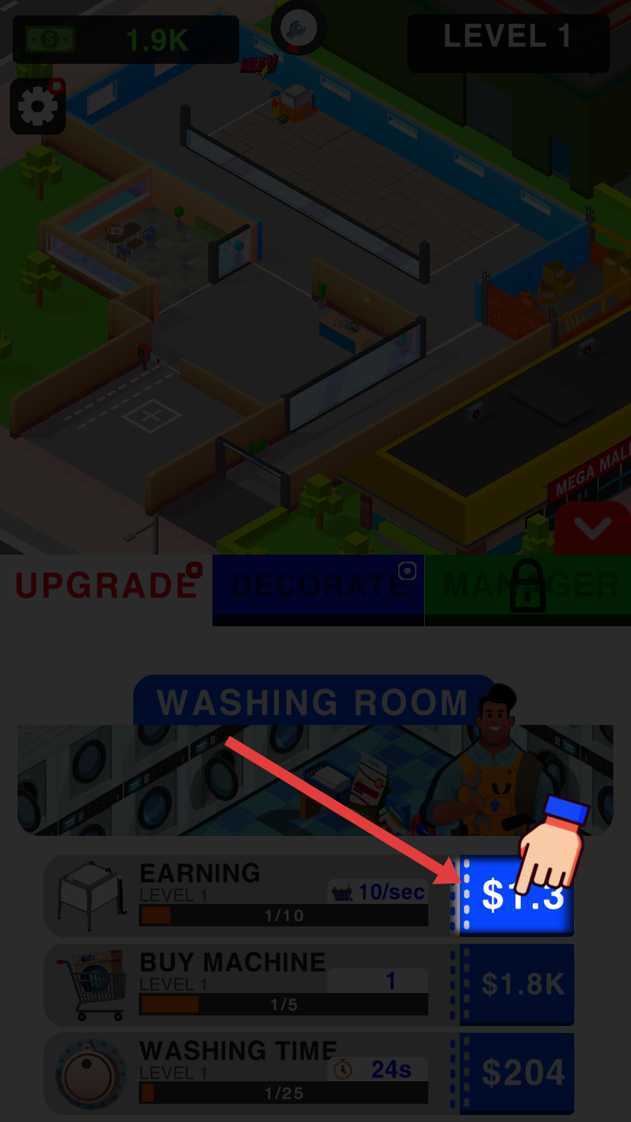 2、接著升級洗衣房相關(guān)收益,花費1美元可提高洗衣房的賺錢速度,增加超市收入來源。