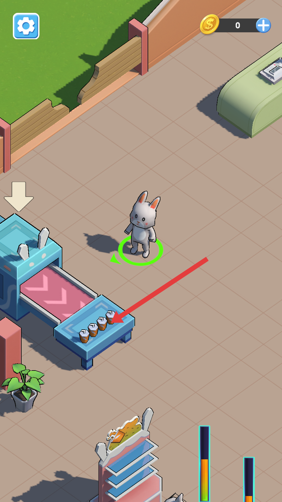 1、農(nóng)場里,操控小兔子去采摘胡蘿卜等食材為制作產(chǎn)品準(zhǔn)備原材料,準(zhǔn)備制作產(chǎn)品。