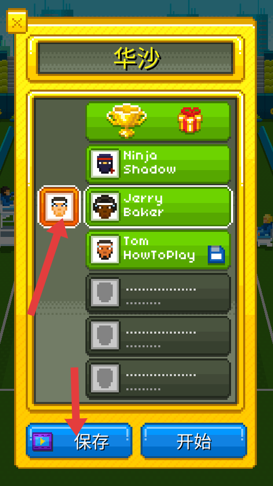 4、賽事相關(guān)設(shè)置或角色選擇后,點(diǎn)擊保存按鈕留存設(shè)置,再點(diǎn)擊開始按鈕,正式進(jìn)入網(wǎng)球比賽環(huán)節(jié)。