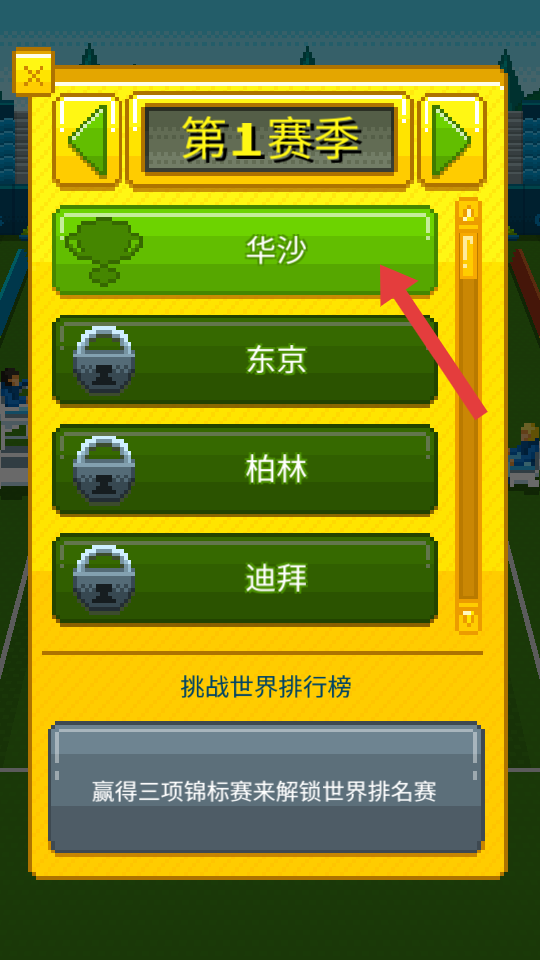 2、進(jìn)入賽季選擇界面后,選擇第1賽季中已解鎖的華沙賽事,即可開啟該賽事的網(wǎng)球?qū)Q。