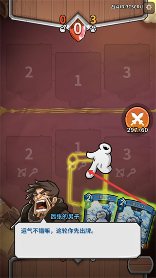 1、會提示先出牌,將卡牌放置到指定位置,按照提示操作,開啟卡牌對戰(zhàn)的第一步。