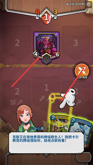 3、對手會打出卡牌,需根據(jù)對方卡牌的屬性和位置,選擇合適的卡牌應(yīng)對,繼續(xù)推進對戰(zhàn)進程。