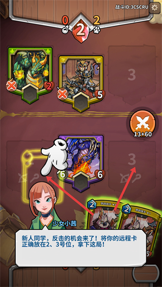 4、可利用遠程卡等特殊卡牌,將其放置到指定位置,發(fā)動反擊,通過合理布局卡牌,爭取贏得對局。
