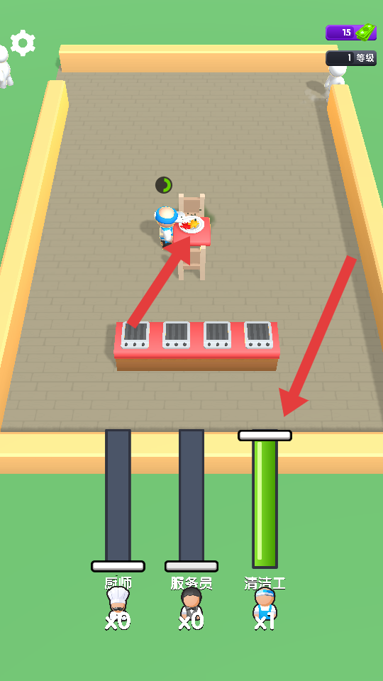 3、顧客用餐完畢,點(diǎn)擊清潔工欄,派遣清潔工前往顧客桌前,清理餐桌,方便接待下一位顧客。