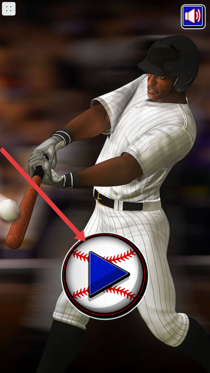 1、進入游戲先看到帶有棒球運動員擊球畫面的初始界面,點擊界面上棒球樣式的開始按鈕,即可開啟棒球擊球挑戰(zhàn)。