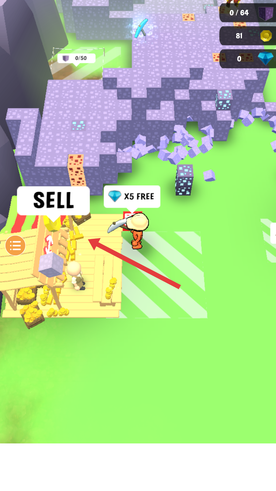 4、收集到礦石后,前往帶有SELL標(biāo)識(shí)的攤位,將礦石賣出,換取金幣,用于游戲內(nèi)的其他操作。