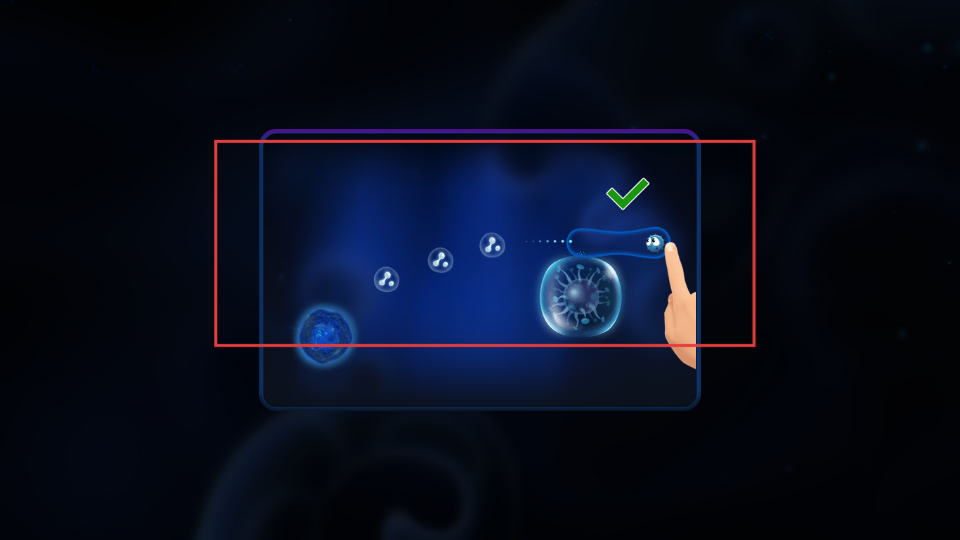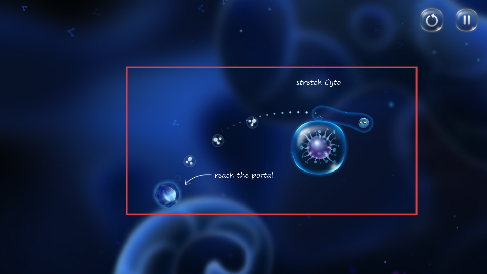 2、按照指引,拉伸細(xì)胞,讓細(xì)胞向傳送門方向移動,收集沿途的小細(xì)胞,推進(jìn)游戲進(jìn)程。