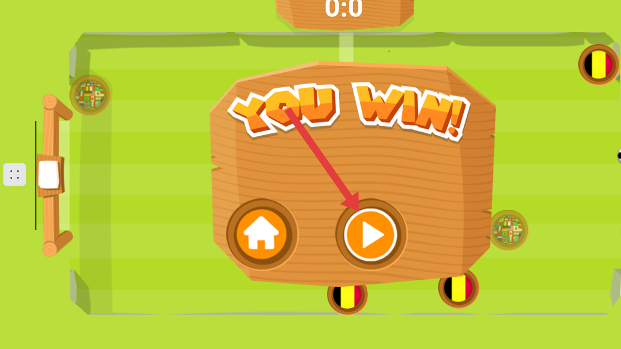 4、當(dāng)成功贏得比賽時(shí),會(huì)出現(xiàn)YOUWIN的提示界面,此時(shí)可點(diǎn)擊界面上的播放按鈕,繼續(xù)下一場(chǎng)足球?qū)?zhàn)。