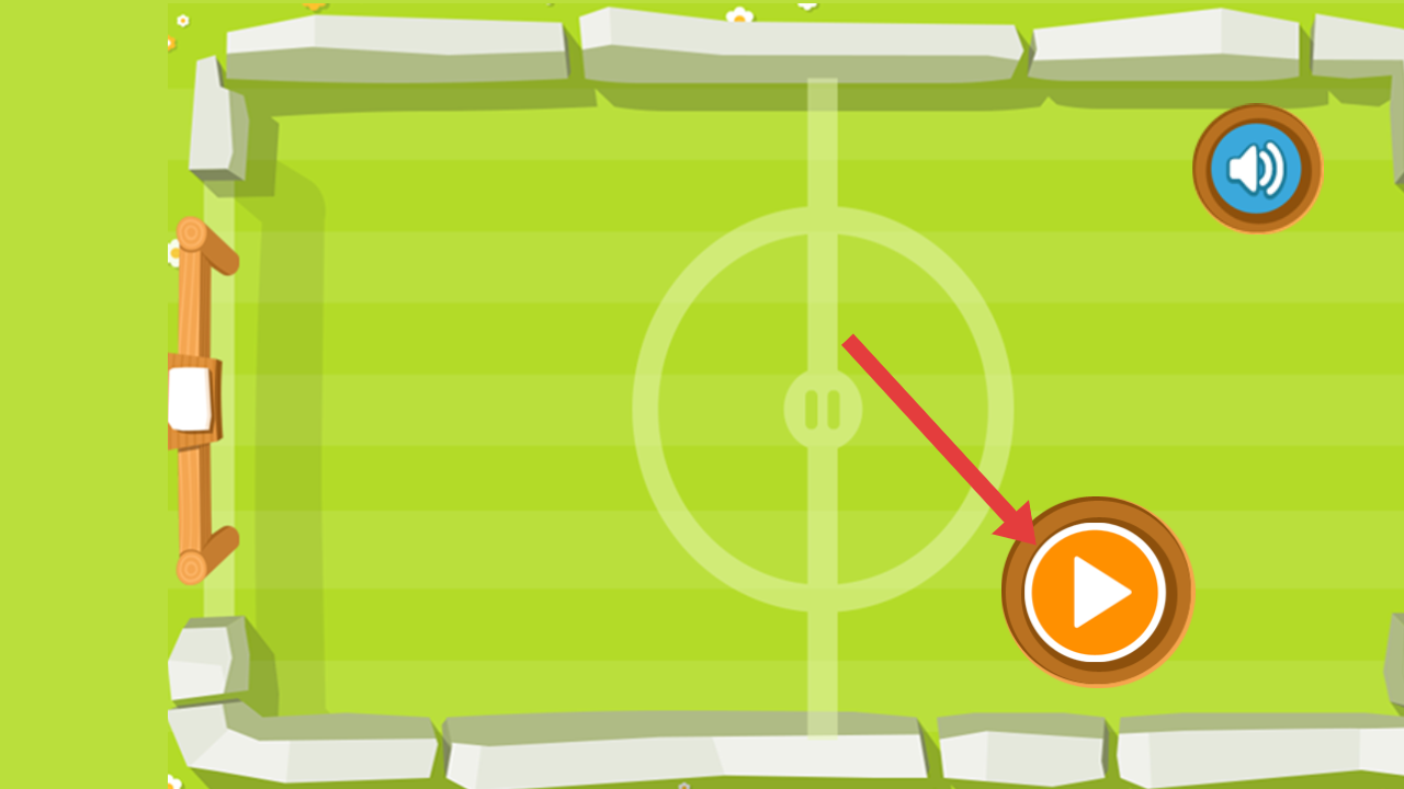 1、進(jìn)入游戲,看到綠茵場(chǎng)界面,點(diǎn)擊帶有播放標(biāo)識(shí)的橙色按鈕,即可開(kāi)啟足球?qū)?zhàn)游戲。