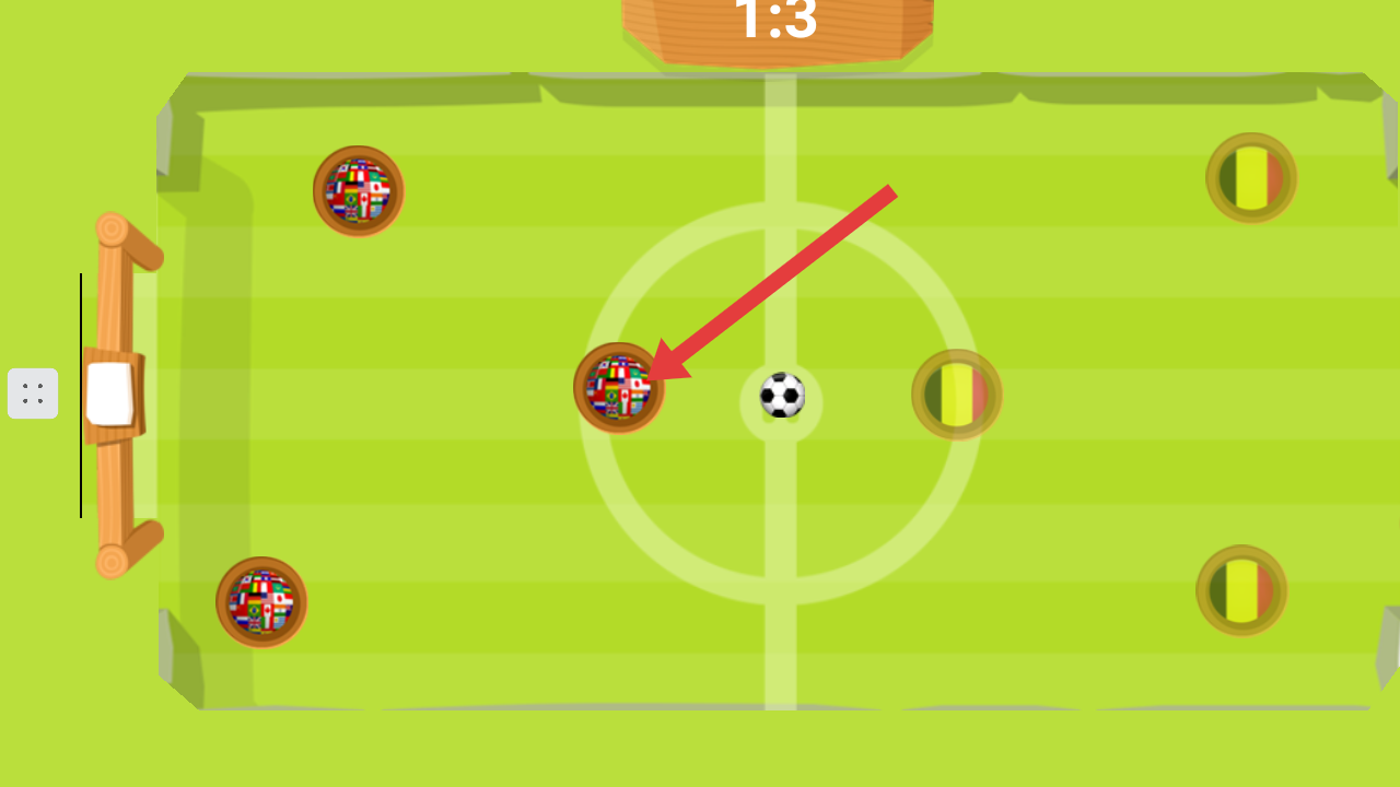 2、游戲開(kāi)始后,場(chǎng)上有足球和帶有不同圖案的圓圈,操控足球,嘗試將其踢入對(duì)手球門(mén)內(nèi)積累分?jǐn)?shù)。