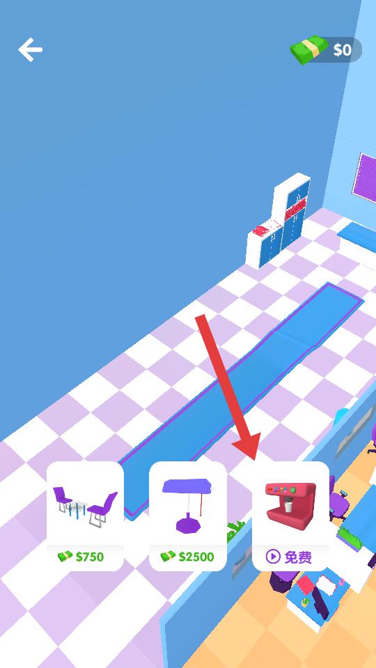 2、進(jìn)入設(shè)施升級(jí)界面,根據(jù)資金情況,選擇可購(gòu)買的設(shè)施,如免費(fèi)的紅色機(jī)器等,點(diǎn)擊進(jìn)行添置,提升銀行服務(wù)能力。