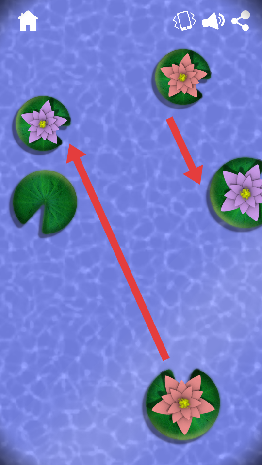 3、在荷葉互動場景,荷葉上有不同顏色的花朵,可按照箭頭指引的方向,與荷葉和花朵進行互動,體驗水中荷葉的解壓玩法。