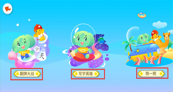 2、識字游戲板塊有翻牌大戰(zhàn)、寫字英雄等游戲,通過游戲化方式幫助孩子識字寫字,提升學(xué)習(xí)興趣與識字能力。