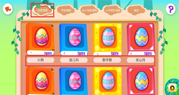 4、課程體系板塊含啟蒙、學(xué)前等多階段課程,有小狗、蟲兒叫等啟蒙內(nèi)容,覆蓋多領(lǐng)域,滿足孩子不同階段學(xué)習(xí)需求。