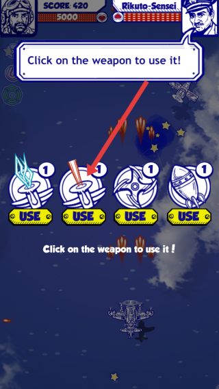 3、游戲會提供多種武器,如不同樣式的攻擊道具,點擊對應(yīng)武器下方的USE按鈕,就能使用該武器助力戰(zhàn)斗。