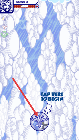 1、進入游戲,看到帶有云朵的界面,下方有飛機圖案,點擊可開始游戲,操控飛機進入空戰(zhàn)場景。
