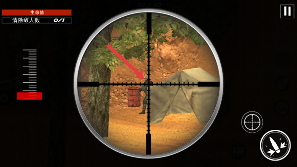 4、瞄準(zhǔn)敵人后,點擊射擊按鈕,對敵人發(fā)起攻擊,成功消滅敵人可完成任務(wù),屏幕會顯示清除敵人數(shù)量等信息。