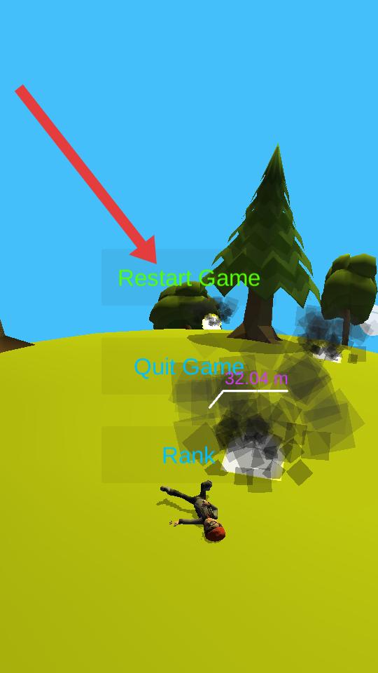 4、若角色倒地,界面會出現(xiàn)重啟游戲等選項,點擊綠色的文字按鈕,可重新開始游戲。