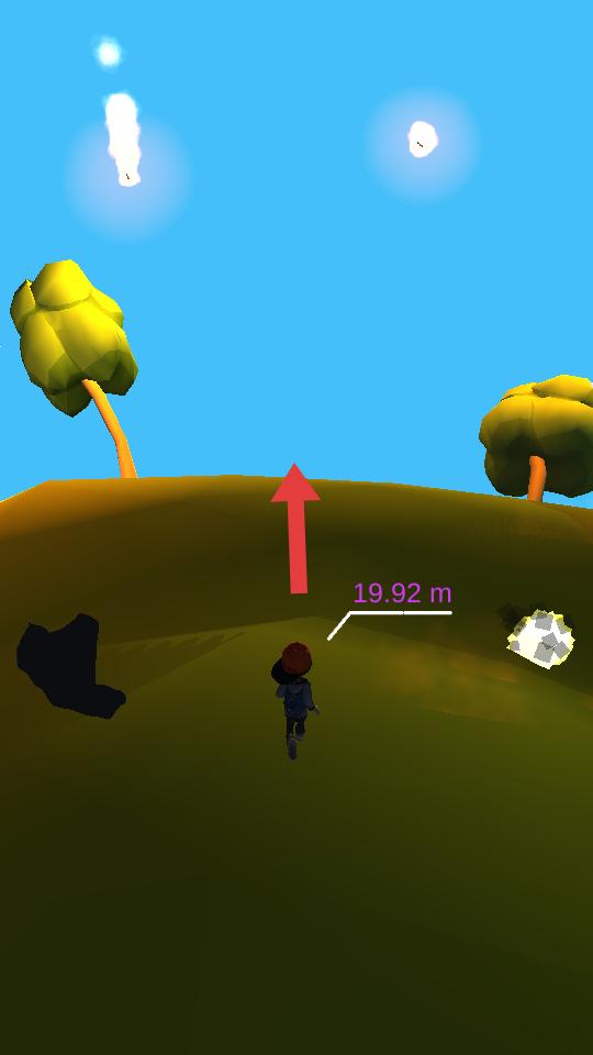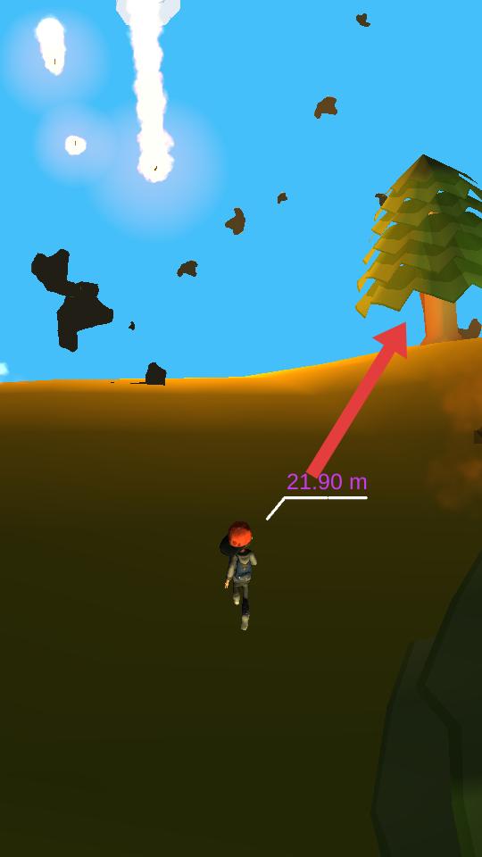 2、進入游戲后,操控角色在場景中移動,朝著箭頭指向的樹木方向前進,注意躲避空中掉落的物體。