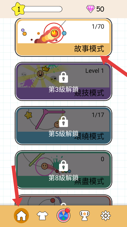 1、游戲初始界面有多種模式,故事模式可直接進(jìn)入,若想從基礎(chǔ)開始就點(diǎn)擊故事模式,開啟游戲之旅。