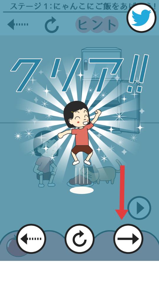 4、成功給貓咪喂食后,界面顯示通過,代表關卡完成,此時可點擊下方箭頭按鈕,繼續(xù)挑戰(zhàn)下一個關卡。
