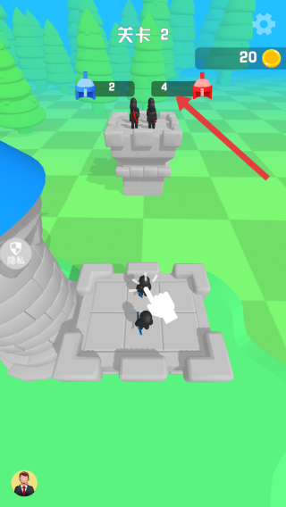1、進(jìn)入關(guān)卡,能看到己方和敵方陣營標(biāo)識,點(diǎn)擊弓箭圖標(biāo),操控角色準(zhǔn)備用弓箭發(fā)起攻擊,開啟塔防對戰(zhàn)。