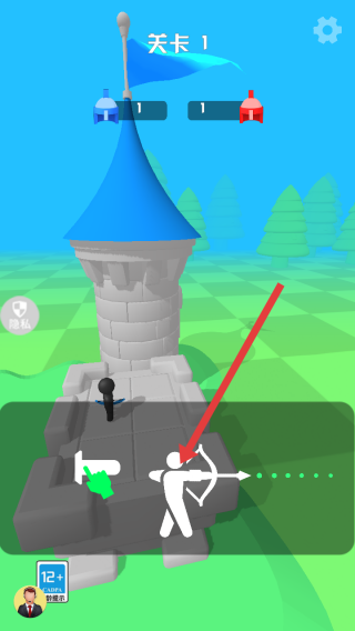 2、戰(zhàn)斗中瞄準(zhǔn)敵方城堡上的敵人,利用弓箭進(jìn)行射擊,嘗試擊中敵人,削弱敵方力量。