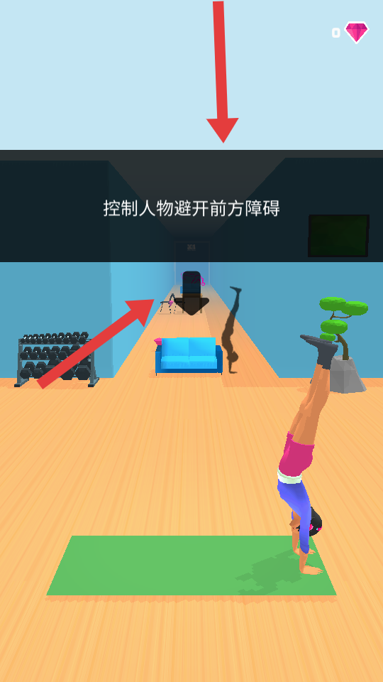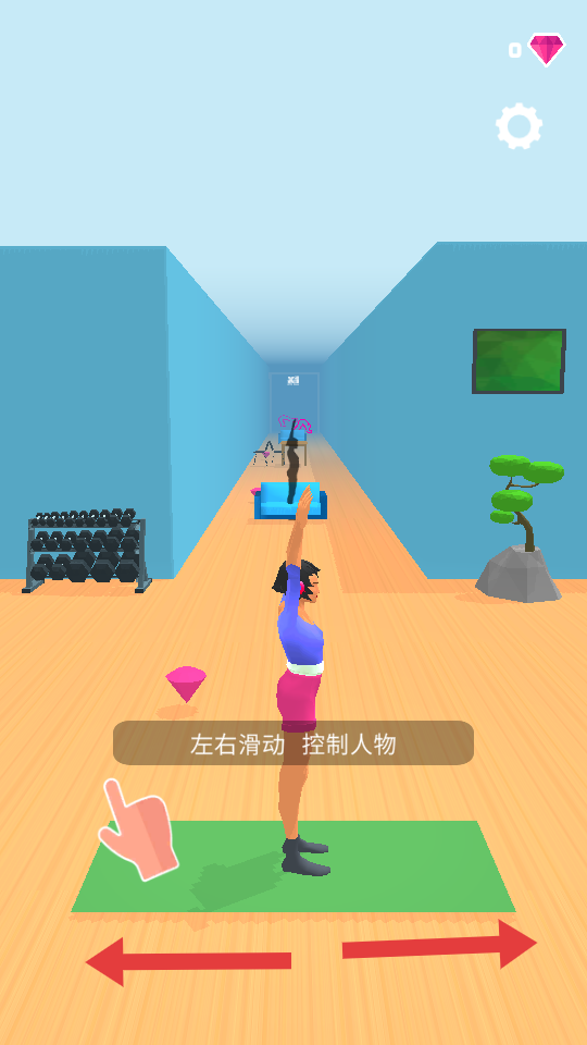 1、游戲初始,需左右滑動(dòng)屏幕來(lái)控制人物,讓人物在綠色墊子上做出相應(yīng)動(dòng)作,以此開(kāi)啟游戲流程,適應(yīng)基本操作。