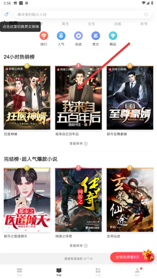 男頻、女頻、出版三大束層精選海量免費好書,全新改版甄選對味書城。
