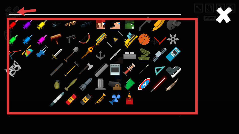 2、進(jìn)入道具選擇界面,有各類武器、工具等道具,可根據(jù)需求選擇合適的道具,選好后關(guān)閉界面進(jìn)入游戲場(chǎng)景,利用所選道具進(jìn)行操作。