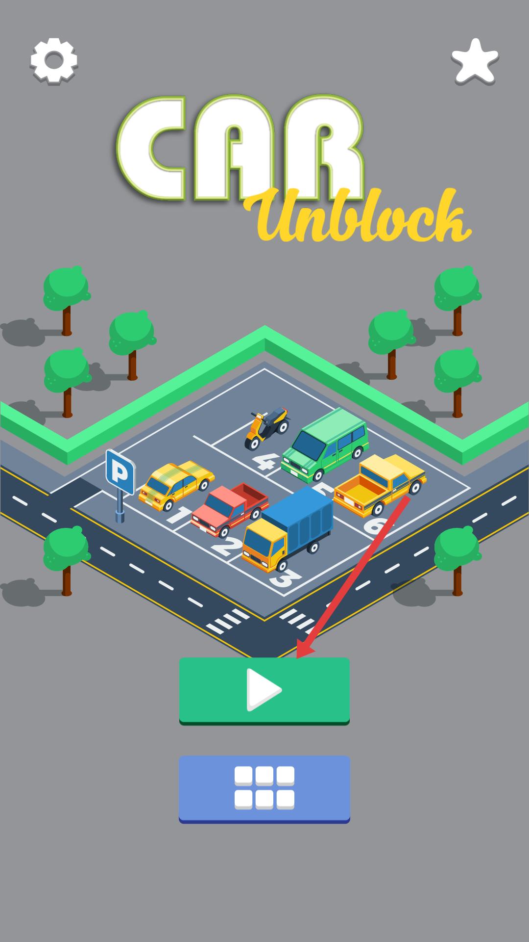 1、玩家下載游戲登入游戲頁面后,點(diǎn)擊下方綠色播放按鈕,即可進(jìn)入游戲,開始車輛疏通挑戰(zhàn)。