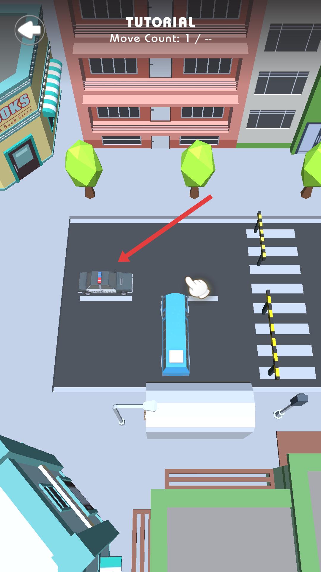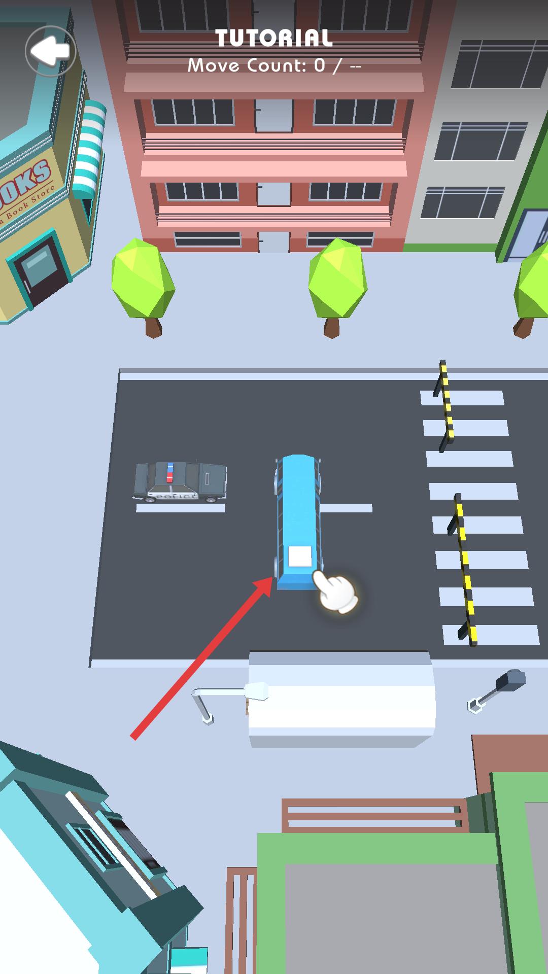 2、進(jìn)入教程關(guān)卡,根據(jù)提示拖動(dòng)藍(lán)色車輛,調(diào)整其位置,為其他車輛騰出移動(dòng)空間,這是疏通車輛的關(guān)鍵操作。