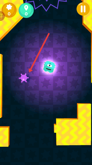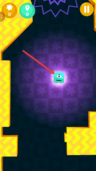 3、移動過程中,小怪獸會遇到紫色障礙物,需躲避障礙物,同時繼續(xù)場景中探索,保證自己的安全。
