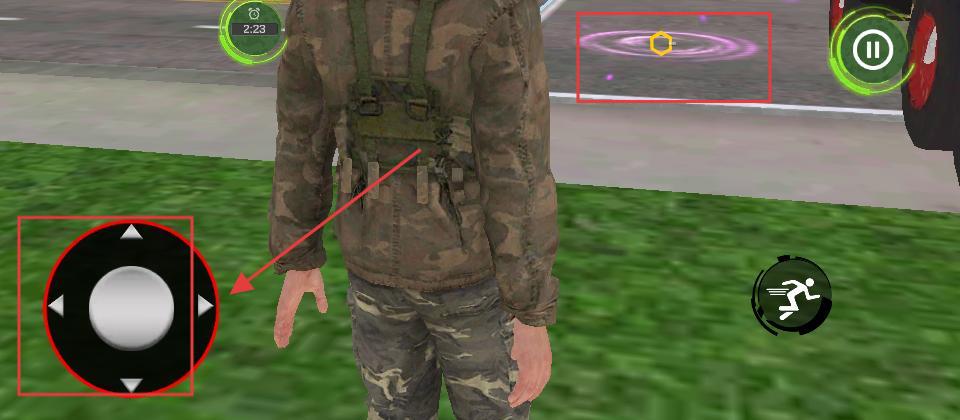 3、進入駕駛場景后通過左側(cè)的方向按鈕操控人物移動,朝著消防車的方向前進,準備登上消防車進行駕駛操作。