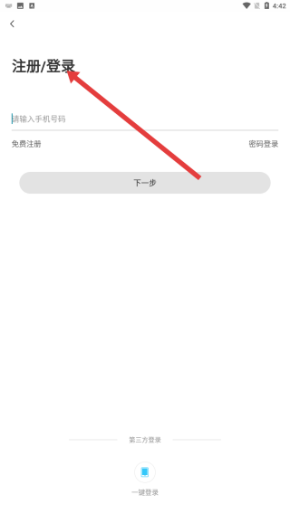 3、注冊(cè)登錄界面,輸入手機(jī)號(hào)碼,選擇合適的登錄方式,如密碼登錄或免費(fèi)注冊(cè)后登錄,點(diǎn)擊下一步。