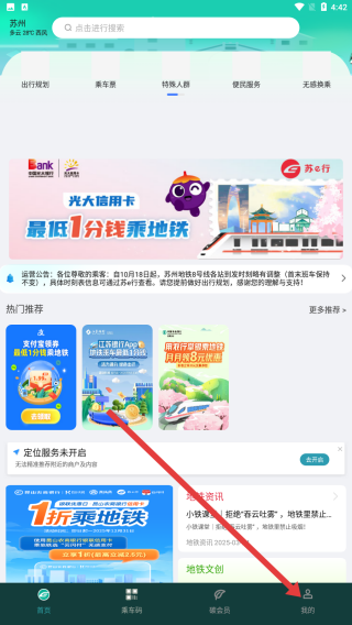 1、打開蘇州地鐵相關(guān)APP,在首頁(yè)點(diǎn)擊右下角我的,進(jìn)入個(gè)人中心頁(yè)面,準(zhǔn)備進(jìn)行登錄操作。