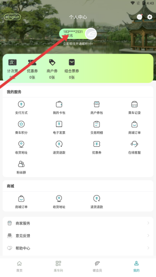 4、登錄成功后,回到個(gè)人中心頁(yè)面,可看到賬號(hào)相關(guān)信息,還能在個(gè)人中心查看和使用各類服務(wù),如乘車記錄、電子發(fā)票等。