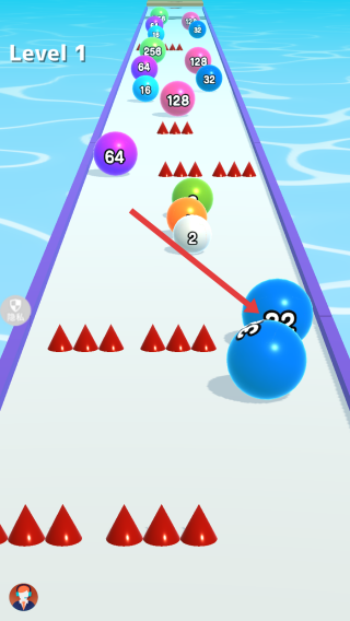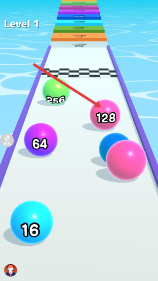 2、移動過程中,讓數(shù)字相同的小球相互碰撞,完成合并,合并后小球數(shù)字會翻倍,同時(shí)軌道場景也會變化,出現(xiàn)不同顏色的平臺。
